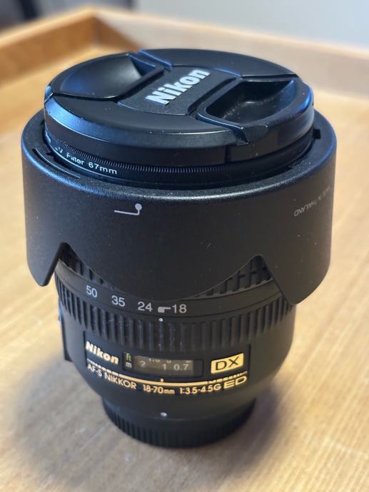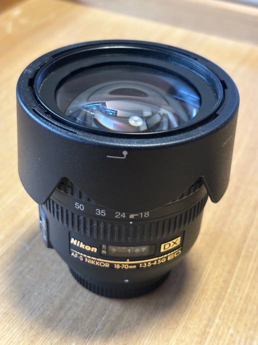Prodajem očuvan objektiv Nikon 18-70mm f/3.5-4.5G ED AF-S DX, uz njega dolazi originalno sjenilo i oba poklopca. Optika čista, autofocus radi bez greške. Odličan standardni zoom za Nikon DX fotoaparate.
