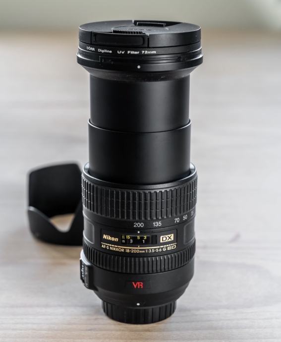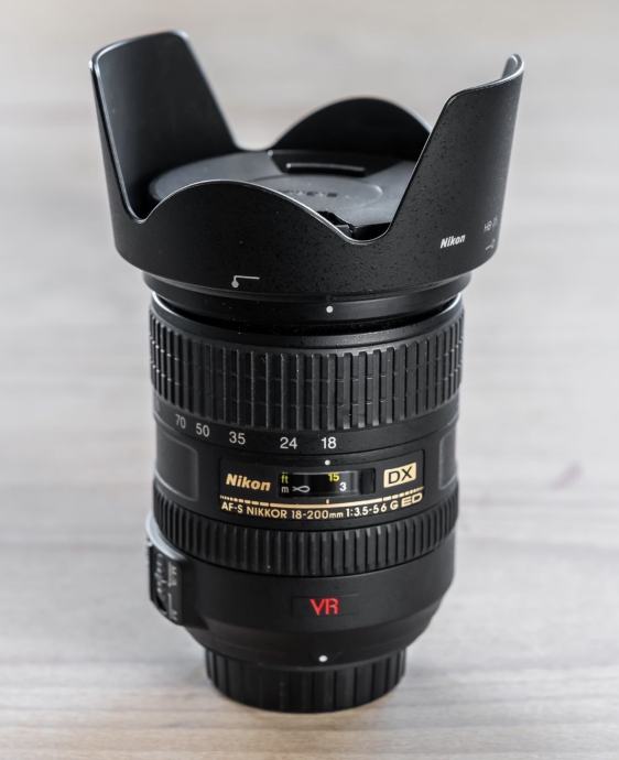 Nikon AF-S Nikkor 18-200mm 1:3.5-5.6 G ED DX objektiv s VR stabilizacijom u odličnom stanju. Dolazi sa sjenilom i oba poklopca.