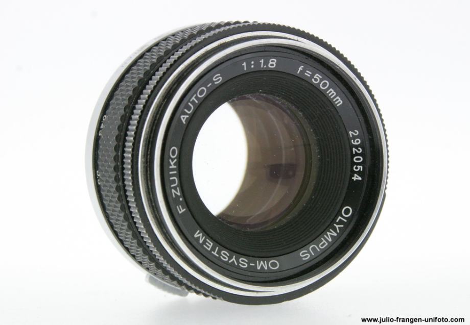 Normalni objektiv OLYMPUS ZUIKO AUTO - S, 50 mm, 1 : 1.8. japanske proizvodnje, serijsko broj : 292054. Koristi se na analognim i digitalnim SLR fotoaparatima sa OM sistemom. Promjer navoja za filter - 49 mm. Objektiv je u vrlo dobrom stanju, bez ogrebotina na staklima.