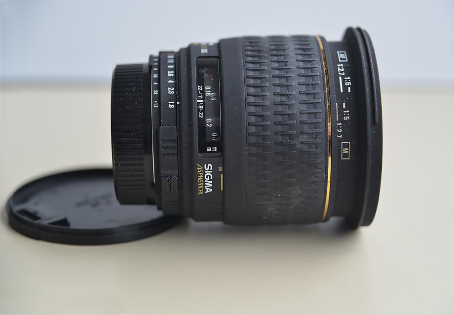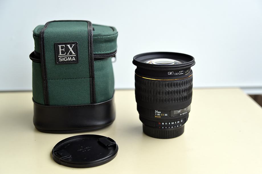 Prodajem izuzetno brzi prime-objektiv SIGMA 24 mm, f1:1,8D EX DG za Nikon aparate FX formata ili film. Objektiv je jako malo korišten i u izvrsnom je stanju (9/10). Promjer navoja je 77 mm. Dolazi u originalnoj čvrstoj futroli s oba poklopca, eventualno uz UV filter uz malu doplatu. Nema nikakve ogrebotine ili izlizanosti na tijelu, a stakla su savršeno čista bez trunka prašine u objektivu.