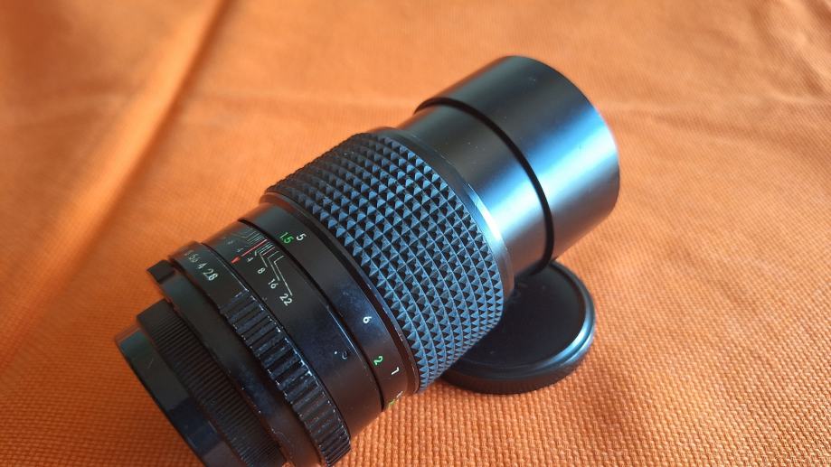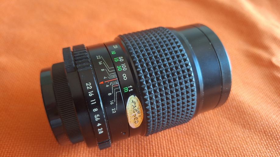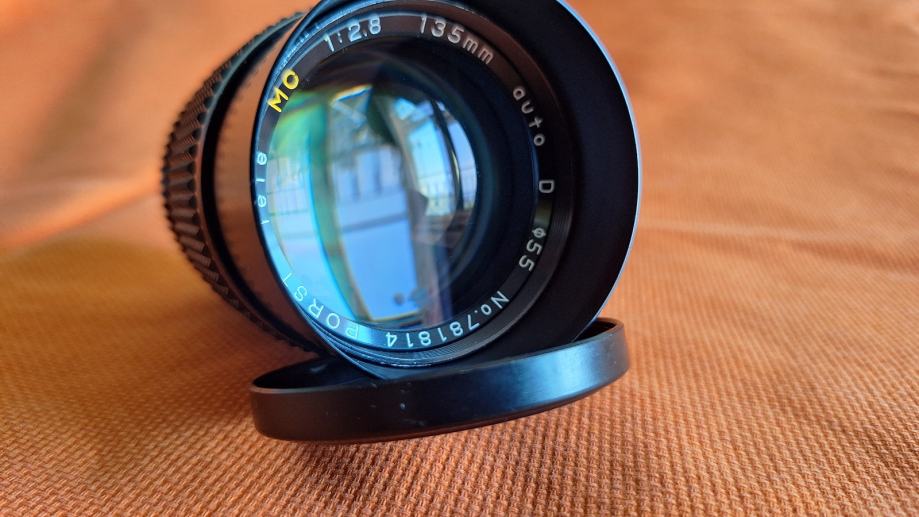 Prodajem japanski objektiv made in Japan oznake Porst tele 1:2.8 135mm fiksne žarišne duljine od 135 mm, najvećeg otvora blende od f/2.8 do f/22 sa pripadajućim poklopcima, integriranim sjenilom, m42 navoj u odličnom stanju.