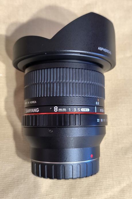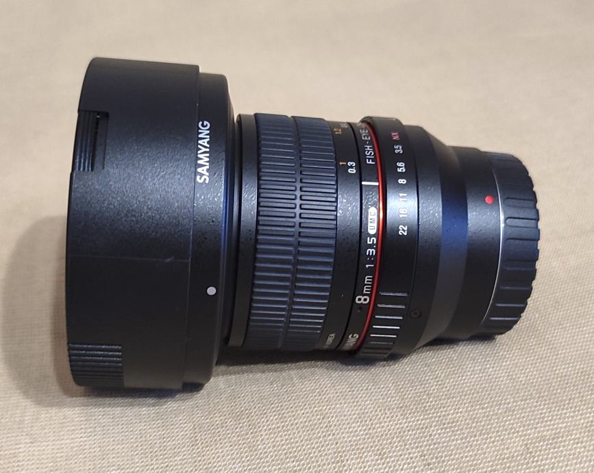 Jedva korišten fisheye Samyang 8mm za Samsung NX bajunet.