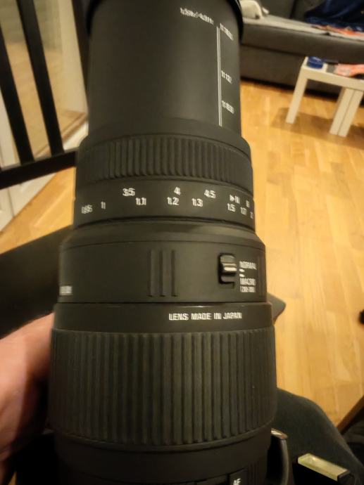 Sigma 70-300 macro objektiv za Nikon kamere s F mount navojem, MINT stanje, kao nov, bez tragova korištenja, bez prašine i gljivica. Poklopac navoja, UV filter