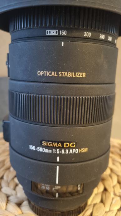 Sigma 150-500, vrlo pristojno očuvana, mat finiš, torbica.
