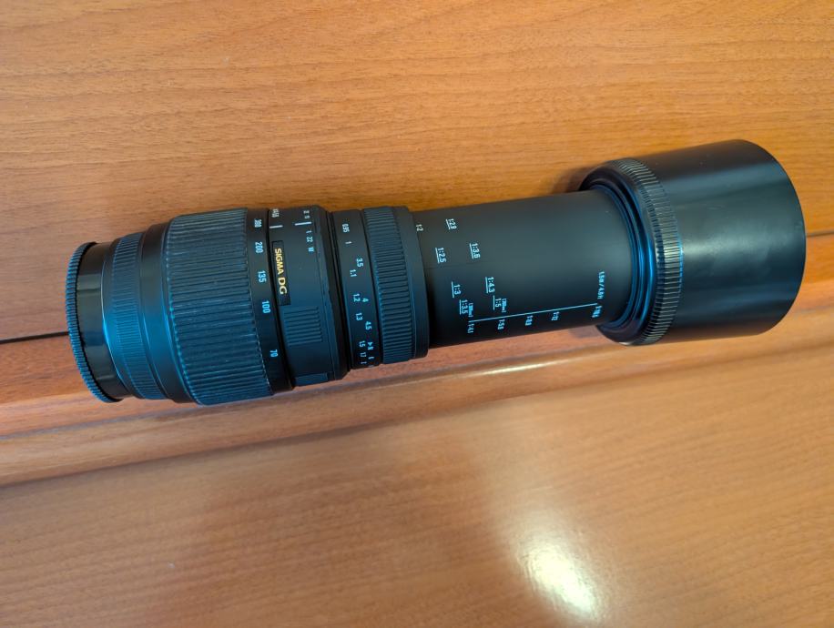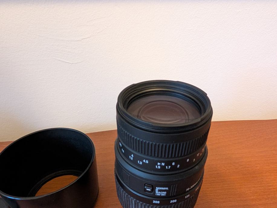 Prodajem objektiv Sigma DG 70-300mm f4-f5.6 za Sony A mount. Sa LA-EA adapterom se moze koristiti i na E-mount aparatima, te sa manual focus adapterima na E-mount i potencijalno nekim drugim kamerama. Razlog prodaje je prelazak na E-mount sustav. Objektiv je odlicno ocuvan, bez ogrebotina/ostecenja na staklima.