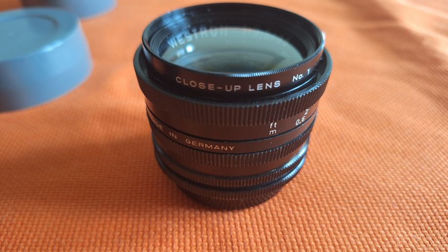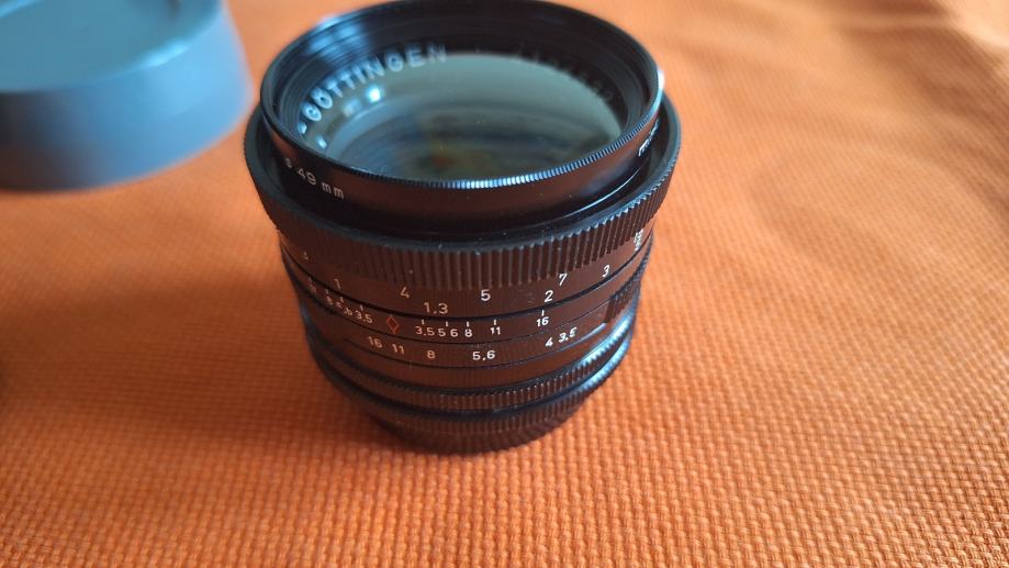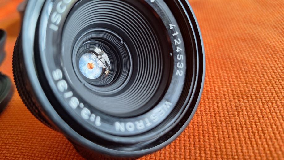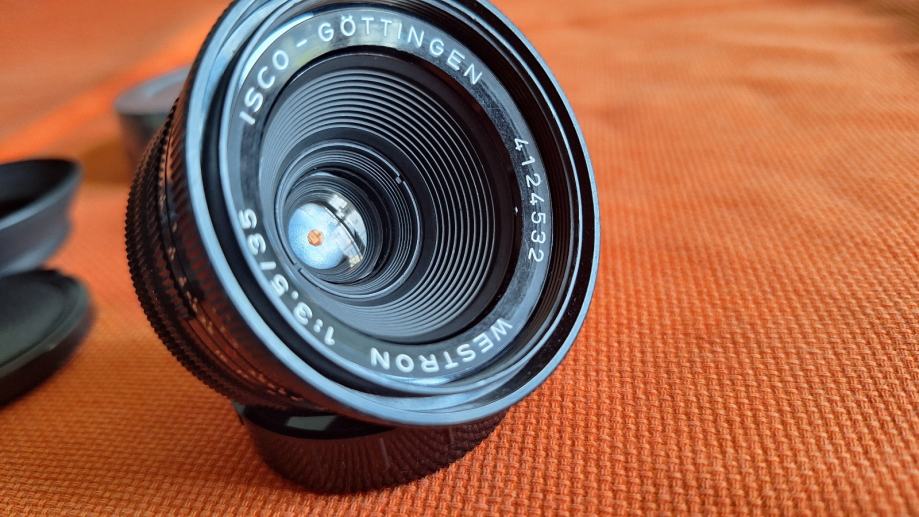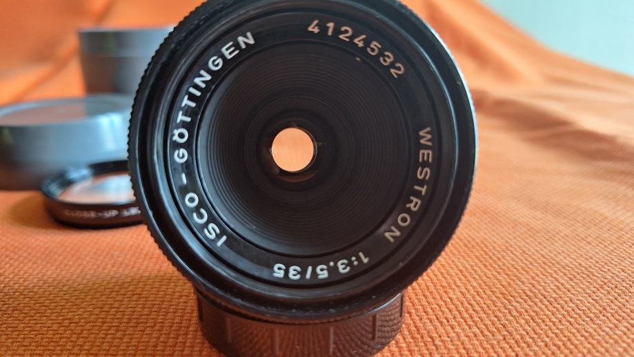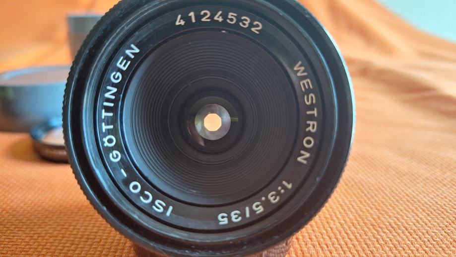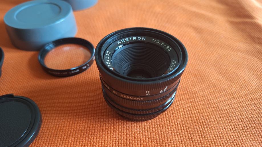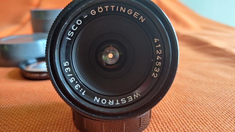ISCO-Gottingen Westron 35mm f/3.5, m42, macro filter, poklopci, sjen