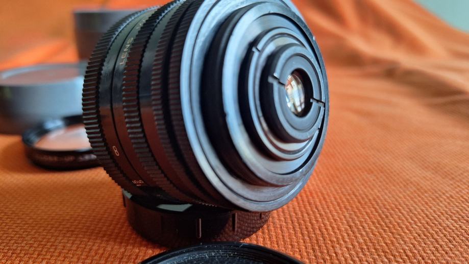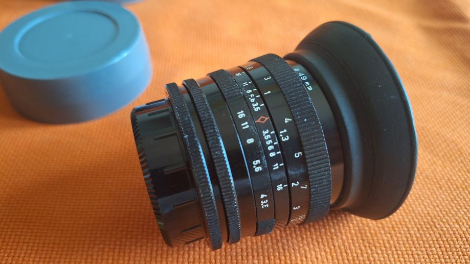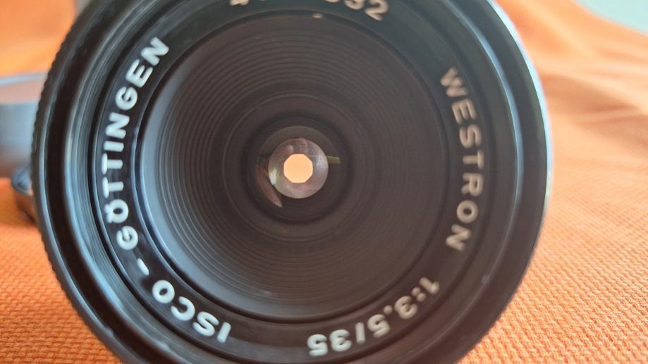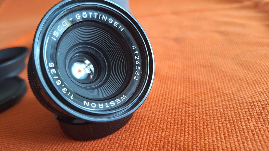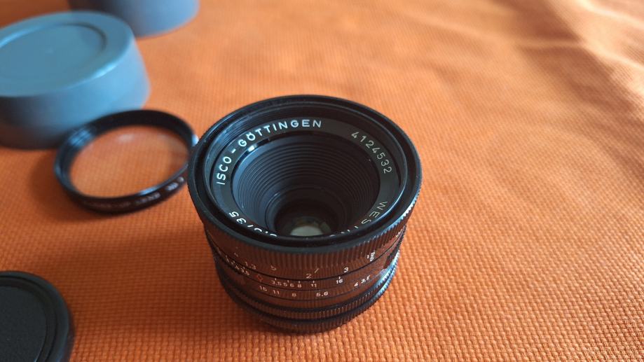 Prodajem njemački (made in West Germany) objektiv oznake ISCO (Ioseph Schneider CO) fiksne žarišne duljine od 35 mm, najvećeg otvora blende od f/3.5, sa pripadajućim poklopcima, zaštitnim macro 49mm filterom, sjenilom i kutijicom za čuvanje, m42 navoja u odličnom stanju.