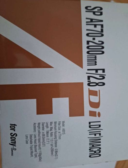 Prodajem navedeni objektiv, kupljen preko Ebaya, objektiv je samo izvađen iz kutije i isproban. Prodajem jer nije kompatibilan s mojim fotićem (imam Sony a7iii te uz upotrebu adaptera ne funkcionira autofokus). Objektiv je isproban na Sony a58 modelu te funkcionira savršeno. Dakle objektiv ima A-mount prihvat.