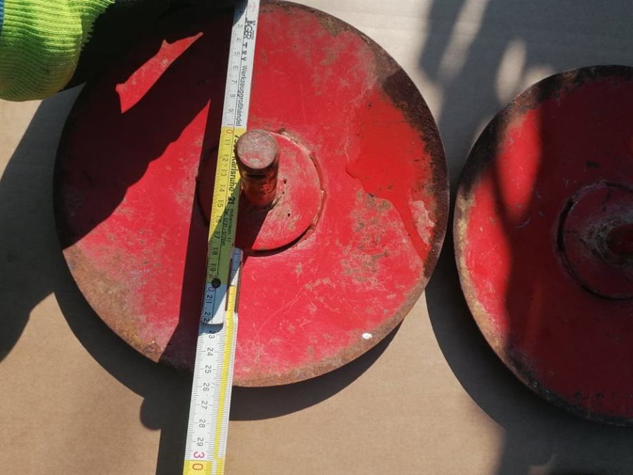 Prodajem bočne tanjure za kopačicu. Tanjuri dođu na krajeve osovina i pomažu za stabilnost u radu te sprečavaju oštećenje korijena i lakšu kontrolu vanjskog ruba kopanja.