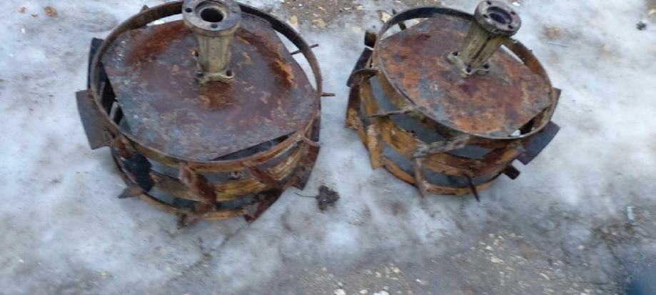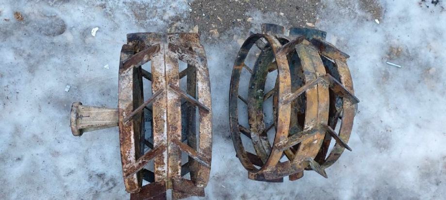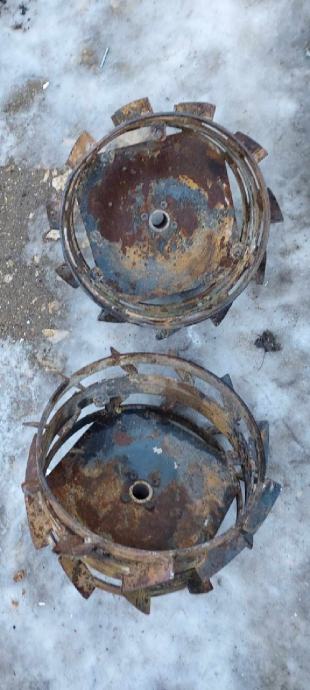 Metalni kotači promjer obruča 40 cm, ukupni vanjski promjer 46 cm, širine 10 + 10 cm, rupa za osovinu 3. 5cm