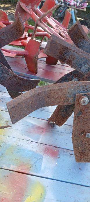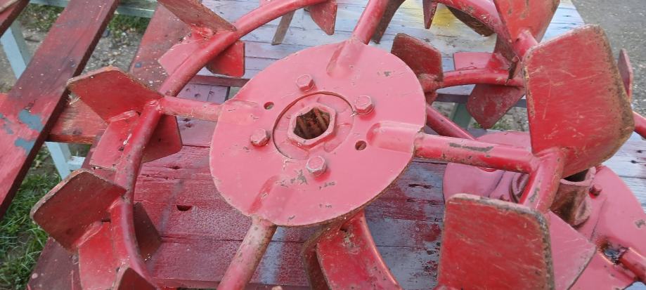 Prodajem set noueva metalne kotače i plug.stvari su iz 1999 ali nerabljeno,nozevi pohrđali od stajanja nikad zemlju bili nisu,moze i pojedinacna prodaja.u kompletu 250 eura,pojedinacno plug 150 ovo drugo 100 eura komad