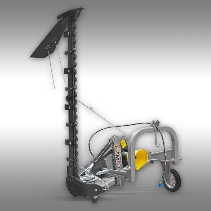 Traktorska kosilica Jansen TM-170 idealna je za kompaktne traktore. Radna širina košnje je 170 cm s dvostrukim grebenskim rezom. Podizanje i spuštanje kraka je hidraulično.
