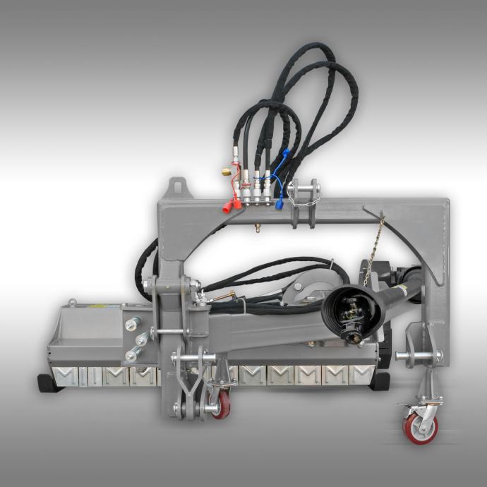Bočni malčer. Hidraulički pokret lijevo/desno i gore/dolje. Za ovu funkciju traktor mora imati 2 vlastita hidraulička kruga za pogon cilindara na malčeru koji imaju dvosmjerni cilindar.