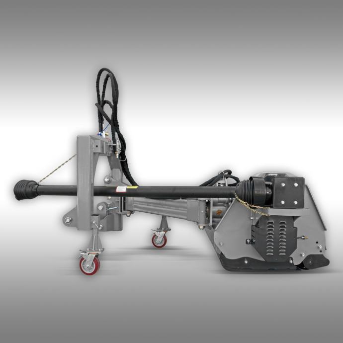 Bočni malčer. Hidraulički pokret lijevo/desno i gore/dolje. Za ovu funkciju traktor mora imati 2 vlastita hidraulička kruga za pogon cilindara na malčeru koji imaju dvosmjerni cilindar.