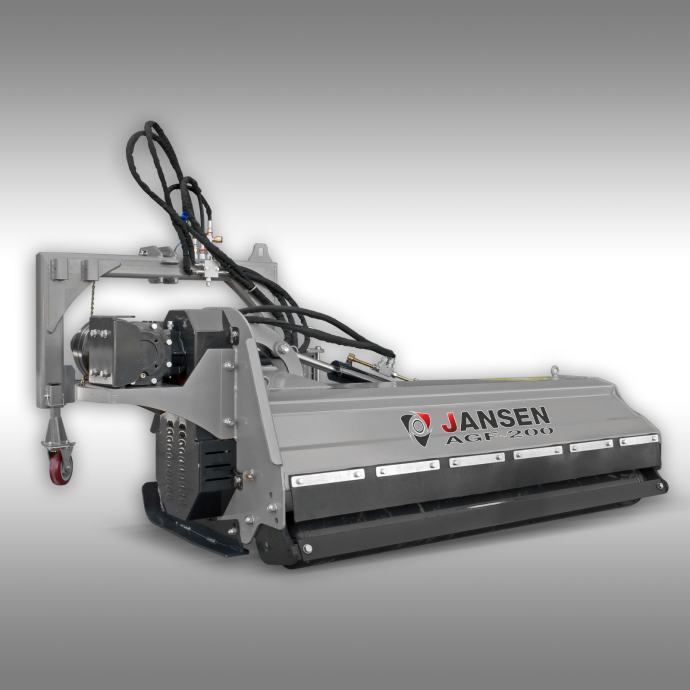 Traktorski malčer Jansen AGF-200 radne širine 195 cm, pogon na kardan traktora, bočne konstrukcije. Priključak je standardni u tri točke. Malčer je snažne konstrukcije sa snažnim rukama, robusnim mjenjačem i teškim čekićima spiralno postavljenim na snažnu osovinu. Malčer je opremljen hidrauličnim pomicanjem lijevo/desno i nagibom gore/dolje.