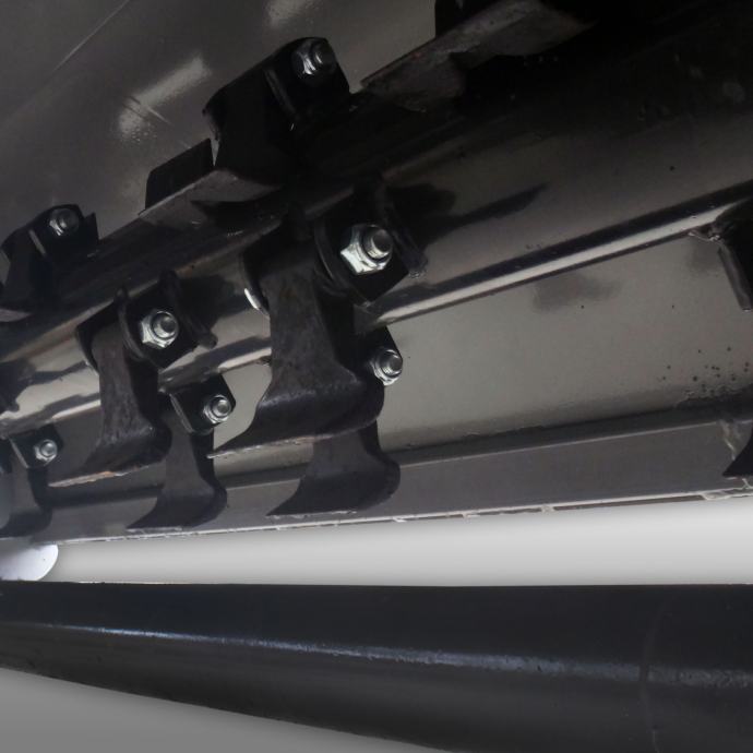 Sprijeda su ugrađene pocinčane letvice s oprugom koje sprječavaju ulazak kamenja.