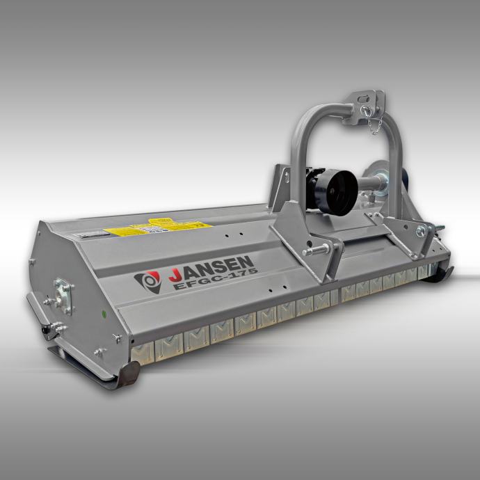 Traktorski malčer Jansen EFGC-175 radne širine 172 cm, pogonjen kardanskim vratilom traktora. Priključak je standardni u tri točke. Malčer ima snažnu konstrukciju s robusnim mjenjačem i teškim čekićima spiralno postavljenim na snažnu osovinu.