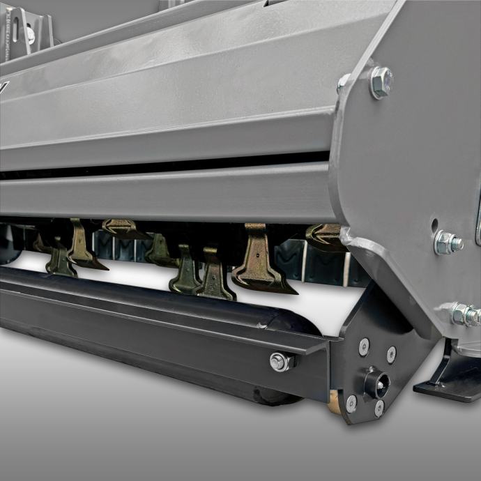 Snažan, robustan reduktor. 28 posebno kaljenih oštrica čekića težine 0,8 kg/kom, spiralno montiranih oko snažne osovine.