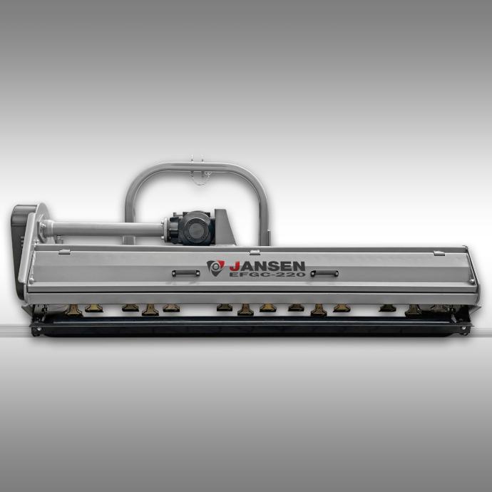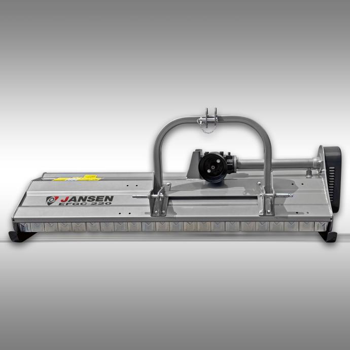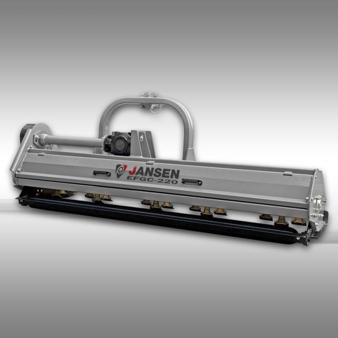 Traktorski malčer Jansen EFGC-220 radne širine 217 cm, pogonjen kardanskim vratilom traktora. Priključak je standardni u tri točke. Malčer ima snažnu konstrukciju s robusnim mjenjačem i teškim čekićima spiralno postavljenim na snažnu osovinu.