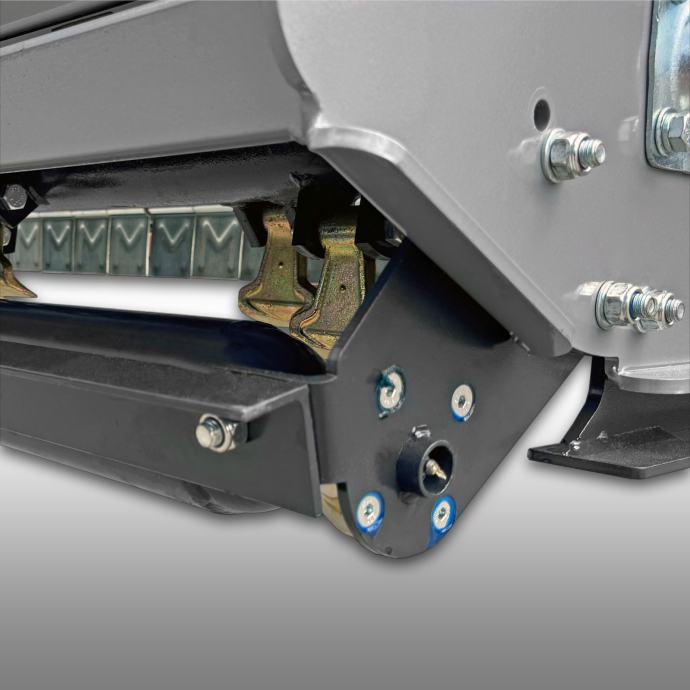 Snažan, robustan reduktor. 36 posebno kaljenih oštrica čekića težine 0,8 kg/komadu, spiralno montiranih oko snažne osovine.