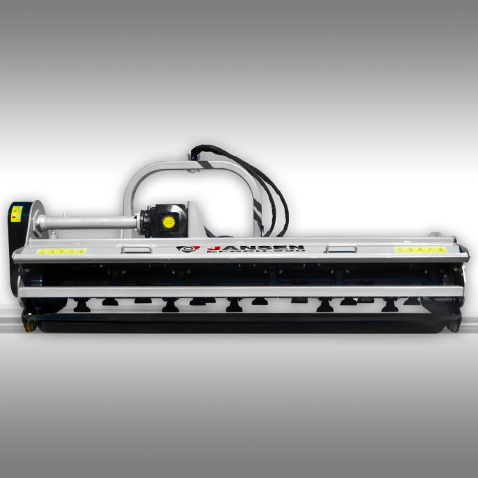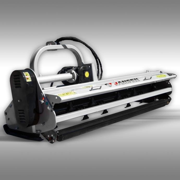 Traktorski malčer Jansen EFGCH-220 radne širine 210 cm, pogonjen kardanskim vratilom traktora. Priključak je standardni u tri točke. Malčer ima snažnu konstrukciju s robusnim mjenjačem i teškim čekićima spiralno postavljenim na snažnu osovinu. Malčer je također opremljen hidrauličnim bočnim pomicanjem lijevo/desno.