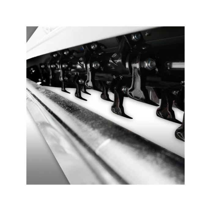 Snažan, robustan reduktor. 32 posebno kaljene oštrice čekića težine 0,8 kg/komad, spiralno montirane oko snažne osovine.