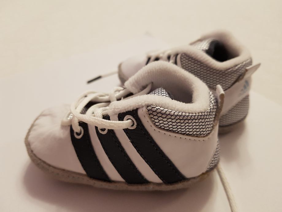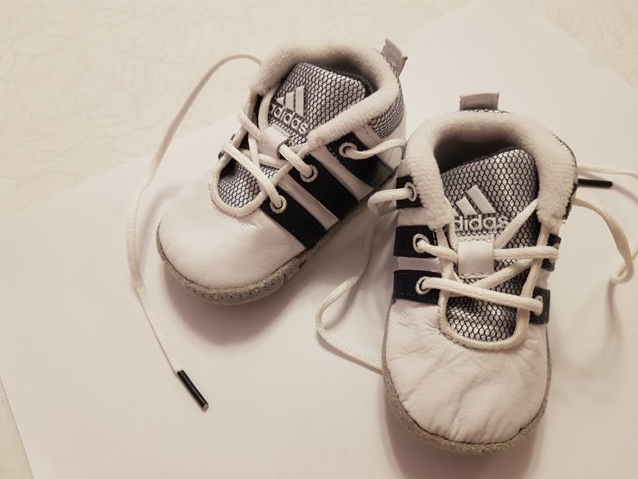 Prodajem skoro nove tenisice Adidas broj 17 nošene samo sat vremena na krštenju. Od fine mekane kože i tekstila sa mekanom tabanicom. Plaćene 200 kn. Može biti za curicu ili dečka. Zagreb/Zaprešić.