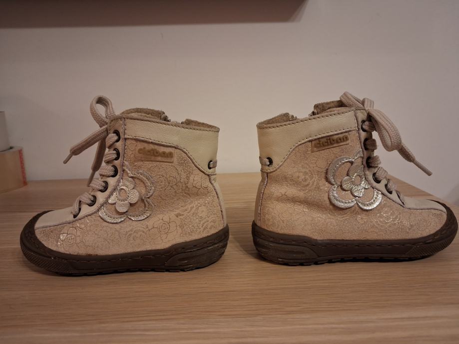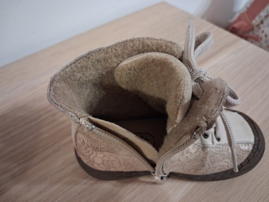Ciciban čizmice br.20. Nošene od strane jednog djeteta kod prohodavanja. Imaju po sebi cvjetni čipkasti uzorak. Imaju toplu podstavu. Stanje vidljivo na slikama.