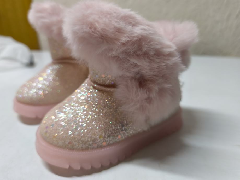 Nove roza čizmice, iznutra krzno, tople, šljokaste, nikad nošene, još imaju etiketu.Svjetluca džon u šarenim bojama dok dijete hoda. Prekrasne. Teško je iznutra točno izmjeriti pa sam mjerila izvana, ali čini mi se realni broj. Nisu nošene, pred par dana stigle nove poštom ali ih ne mogu vratiti a kliknula sam krivi broj prilikom narudžbe. Ako šaljem boxom ide na moj trošak. Može preuzimanje Međimurje, Varaždin.