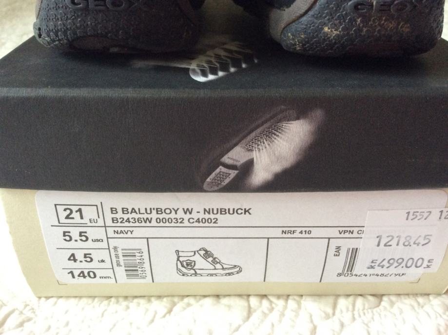 Prodajem cipelice za dječake marke Geox, veličine EU 21 (vanjska dužina 14 cm, unutarnje gazište za stopalo do 12,5 cm), plave sa sivim detaljima model B Balu Boys).