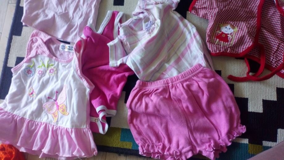Odjeca za djevojcice od rodjenja do 1. rođendana, ukljucuje odjevne predmeta po 2 kn svaki, carapice, stramplice, bodici, hlacice, haljinice,rukavice, kapice, majcice kratkih i dugih rukava, vestice..... Miješano. Po potrebi šaljem poštom ili Tiskom ukoliko ukupan iznos premašuje 70 kn. Možete kombinirati s drugim mojim oglasima.