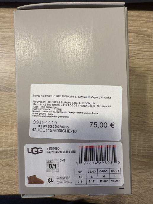 Prodajem UGG čizme za bebu, veličina xs, 0-6mj. Kupljene u 11/2025 u Icon-u. Korištene kratko, očuvane i čiste.