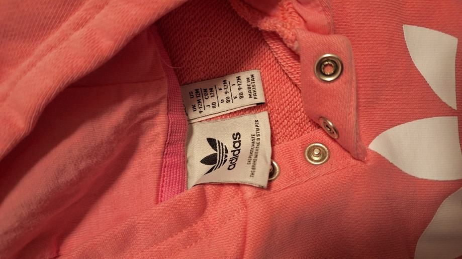 Prodajem Adidasovu trenirkicu za bebe, veličina 80, iako bih ja rekla da je broj manji nego uobičajeno, ja sam ju svojoj bebi oblačila dok je bila 68/74.