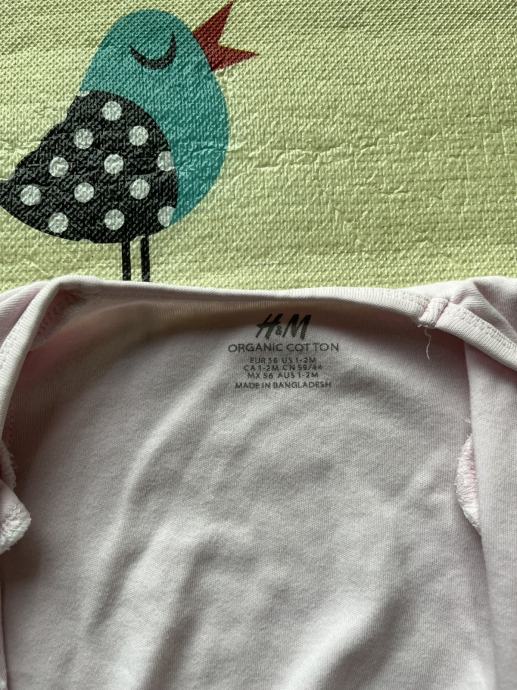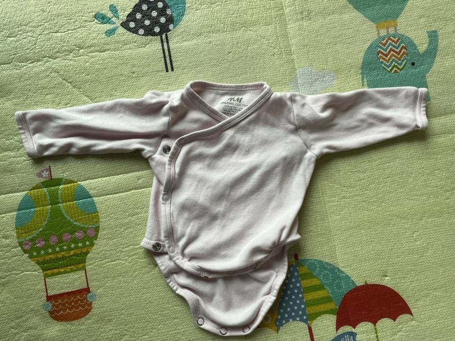Benkica roza bodi 56, H&M. Na slikama izgleda bijelo, svijetlo roze boje je.