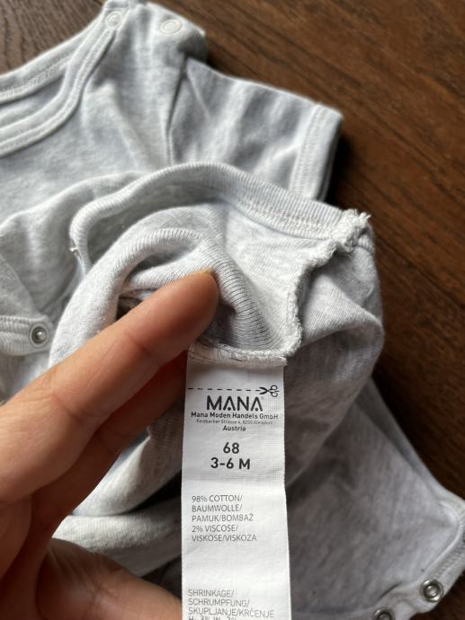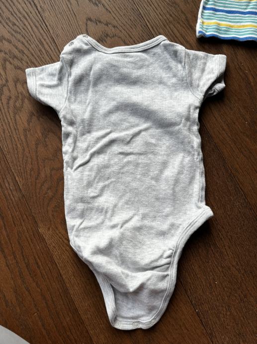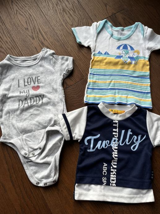 Bodi i dvije majice kratkih rukava 68, stanje vidljivo na slikama, nošeno ali bez oštećenja. Majice nemaju etiketu s veličinom ali po meni odgovaraju za 68 / 74