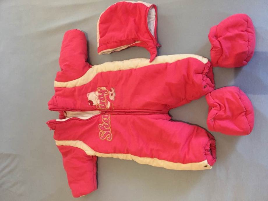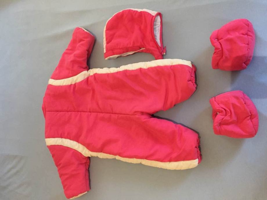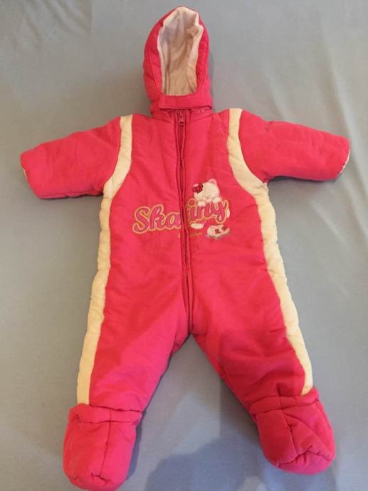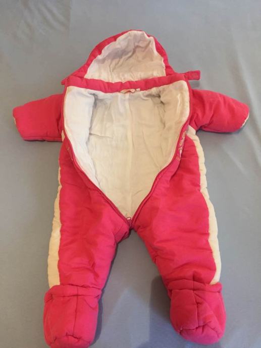 Dječiji skafander marke NOI DUE, roza bijele boje, vel.74 za bebe od 9mj, kapuljaca se skida kao i dio koji ide preko cipelica.
