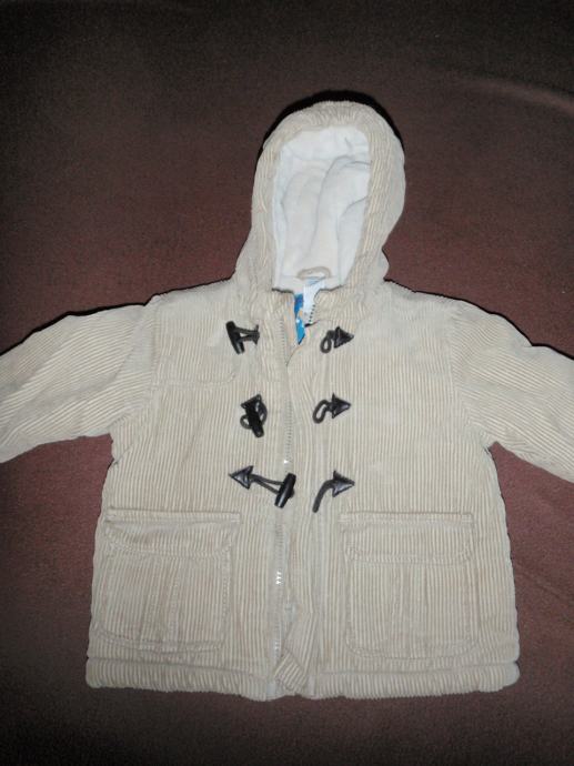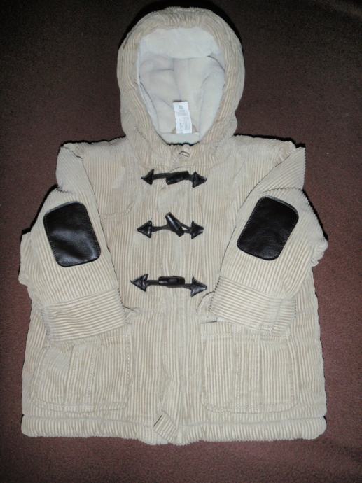 Dječja zimska jakna, kaputić. Veličina 80. Boja svjetlo smeđa, beige od rebrastog samta sa kapuljačom. Na laktovima ima zakrpe u tamno smeđoj boji. Unutrašnjost podstavljena, jako topla idealna za jesen i zimu. Kopčanje na patent i iznad su ukrasni gumbi. Jako dobro očuvana, bez flekica i ioštećenja. Pogledajte moje ostale oglase.