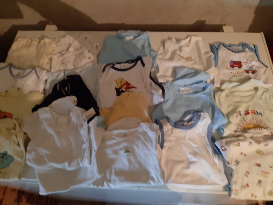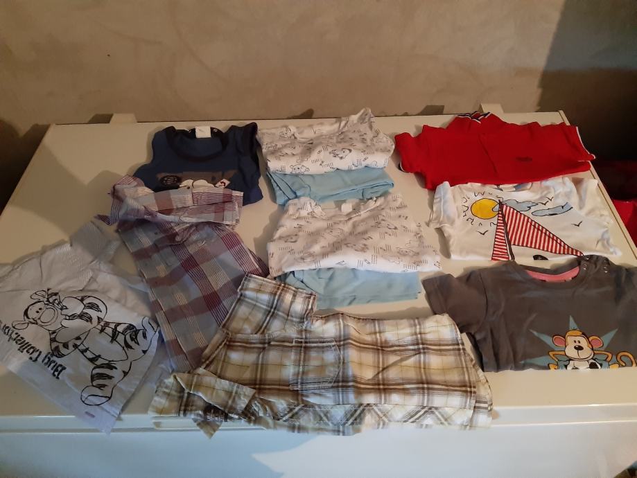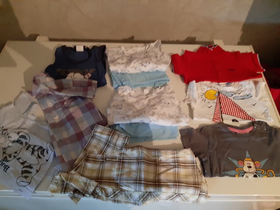 Robica za dečkiče uglavnom broj 80 ili nešto malo 74-80 . Ima svega od bodiča,majci,trenirkica,hlačica,debljih majci,dvije jakne. Ima nešto i ljetne robice ,ima i vrečica čarapica. Sve u lotu 200kn,toga ima puna velika kutija. Mogučnost slanja poštom.