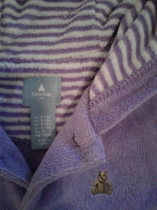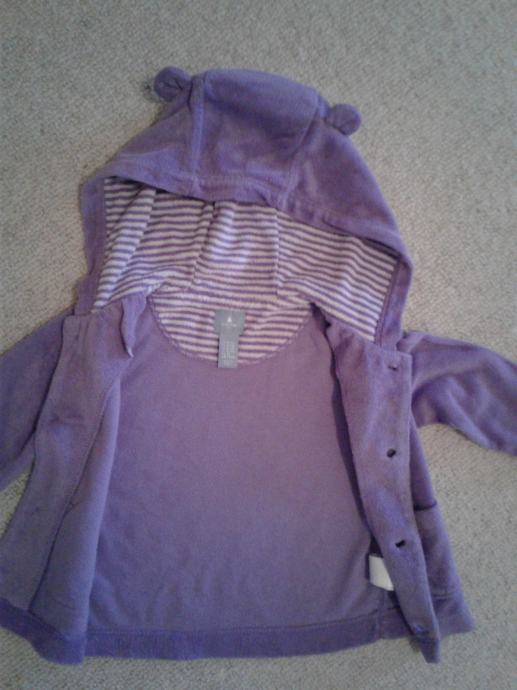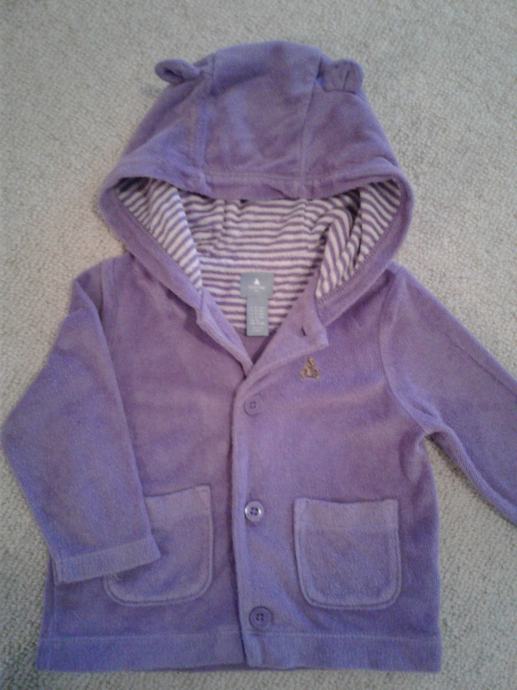 Prodajem ljubičastu babyGap vestu vel.80 (6-12mj) s kapuljačom. 80% pamuk. Potpuno očuvana. Moguće preuzimanje u Zagrebu i Samoboru ili slanje poštom uz nadoplatu.