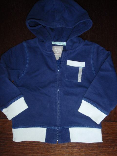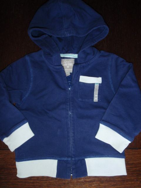 Pamučna duksica u tamno plavoj boji sa kapuljačom. Pasice su bijele boje. Kopčanje na patent. Ima džepove i detalj je džep na prsima s lijeve strane. Dobro očuvana, bez flekica i oštečenja. Pogledajte moje ostale oglase.