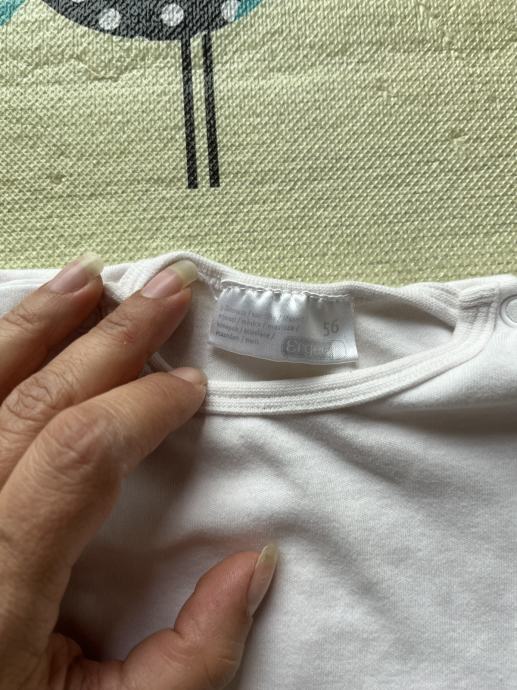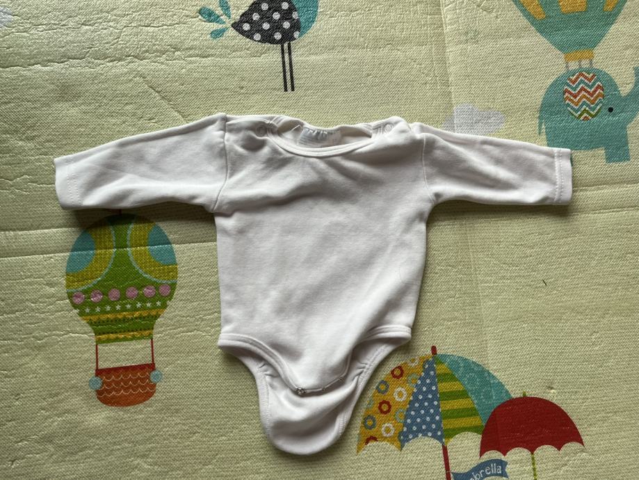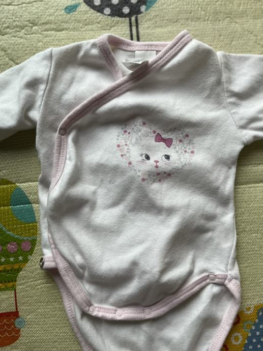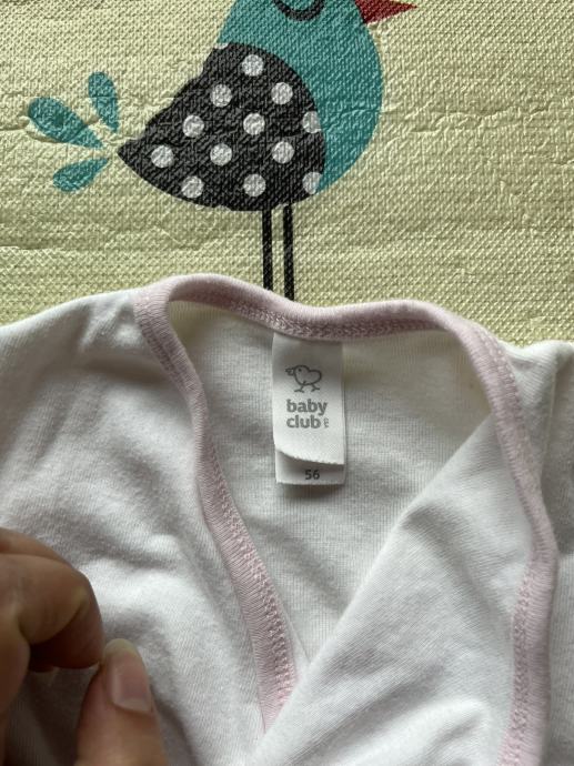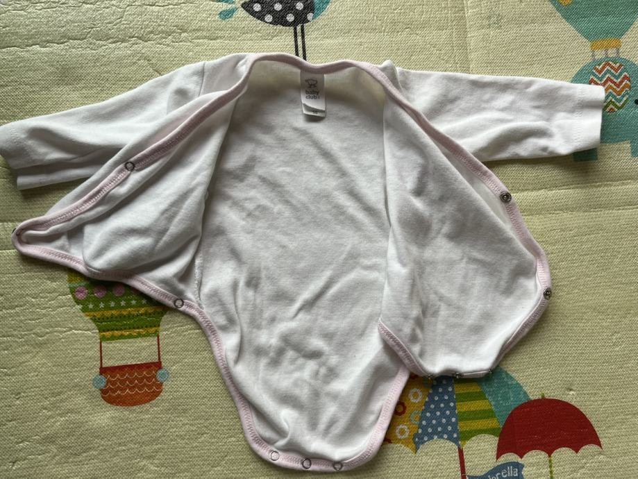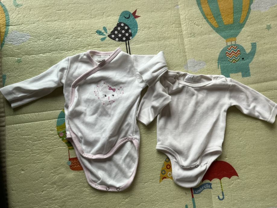 Dva bijela bodija 56, sa macom baby club 56, čisto bijeli ergee 56