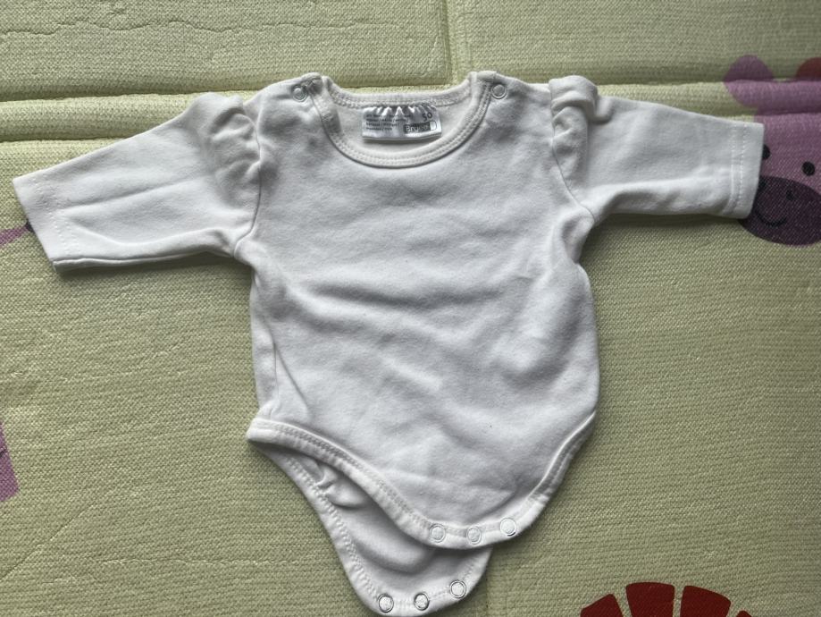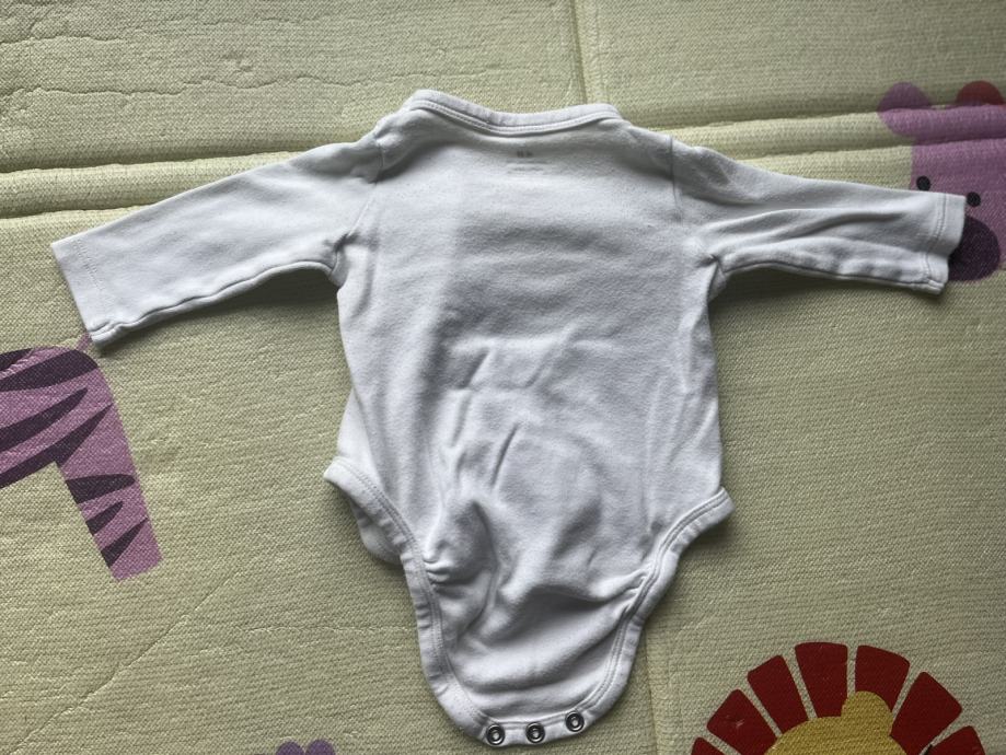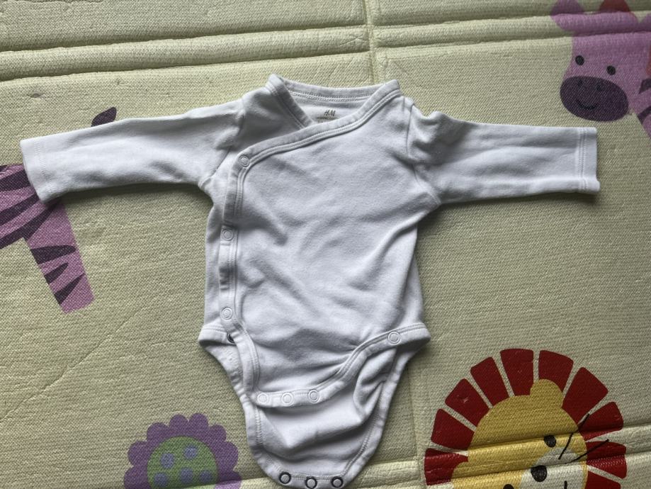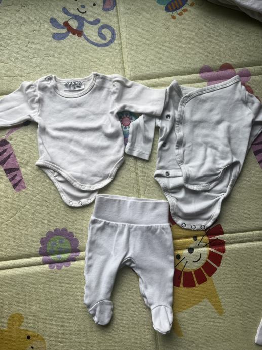 Dva bodija i hlače sa stopalima 50 / 56, jedan bodi Ergee 50, drugi na preklom H&M 56 i hlače So cute 56.