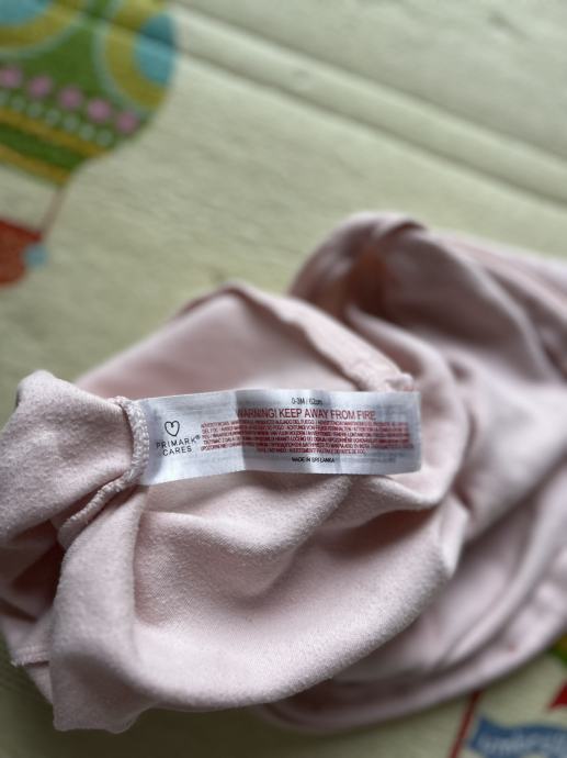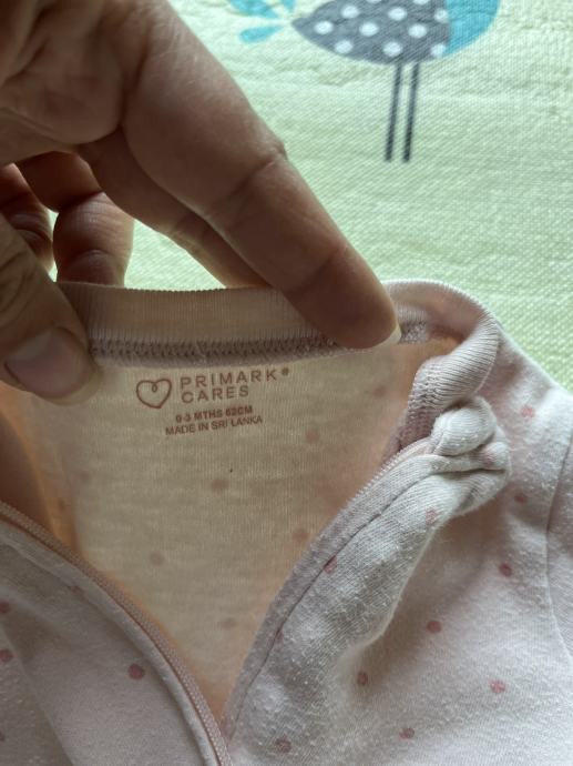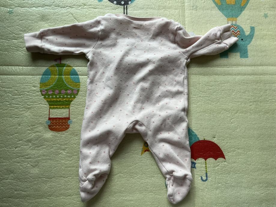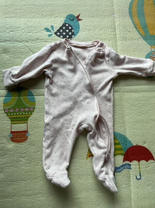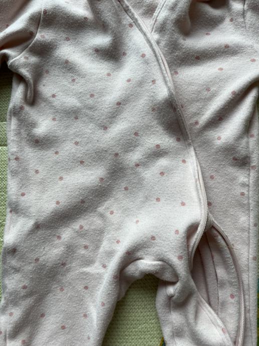 Dvije jednodijelne pidžame sa stopalima 56 / 62, bijela je deklarirana kao 50 / 56 ali je malo veća, roza 62 Primark