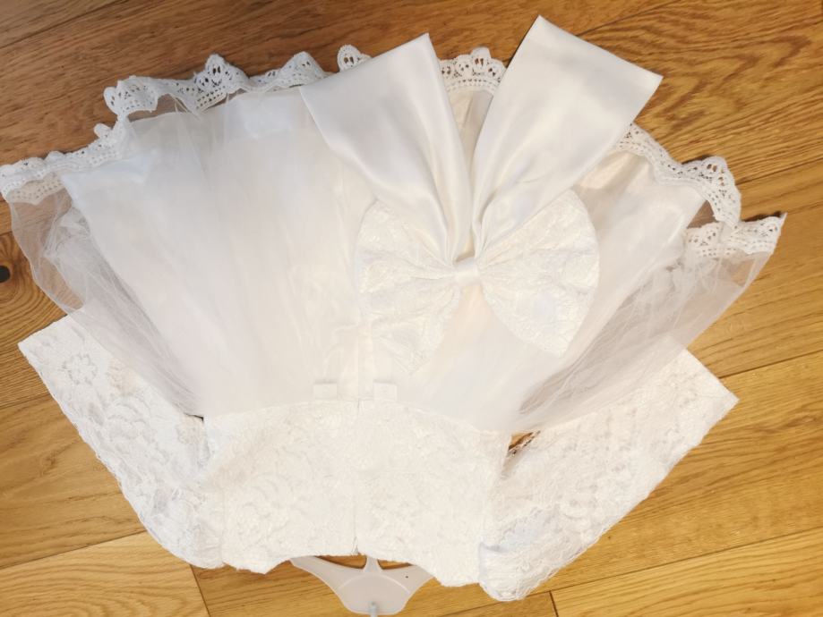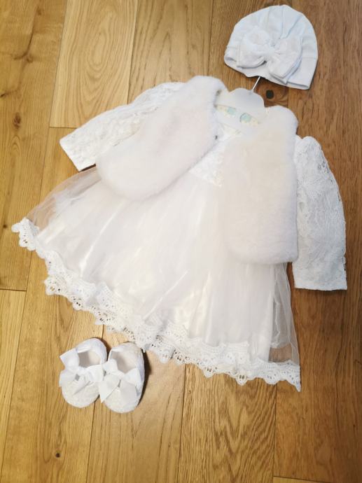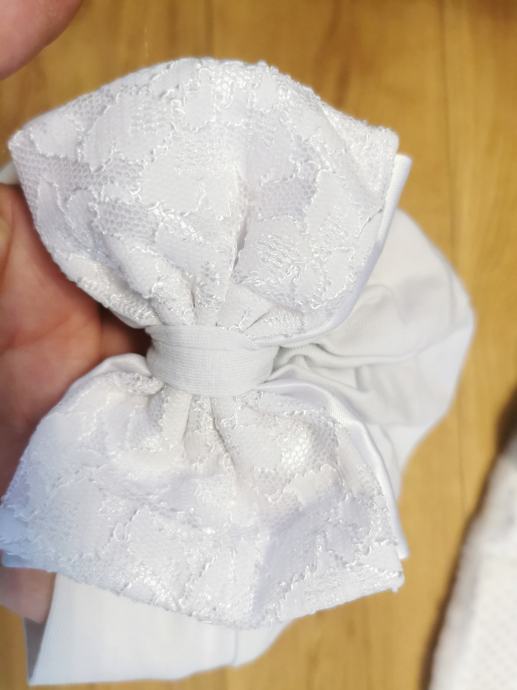 uz haljinu ide turban u kombinaciji pamuka i mašne presvučene šlinganim materijalom haljine 6-12mj opseg kape 40-46cm.