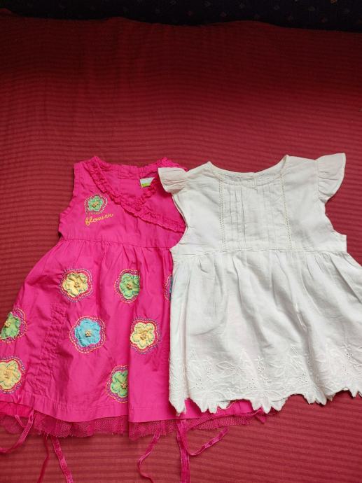 Dvije prekrasne haljinice za djevojčice od 6 do 12 mjeseci, pamuk, nenošene. Cijena za obje je 18 eura, a svaka posebno 12.