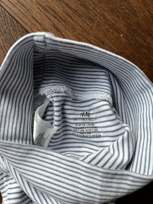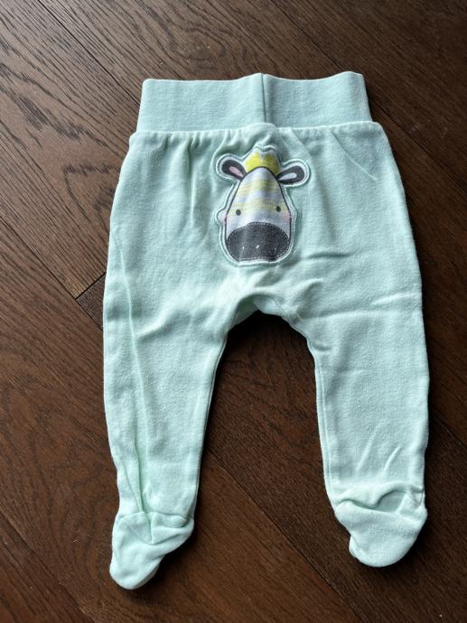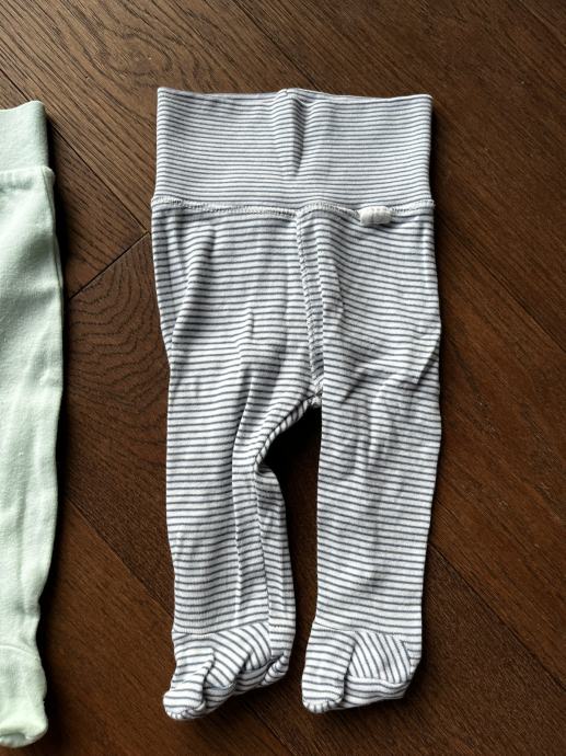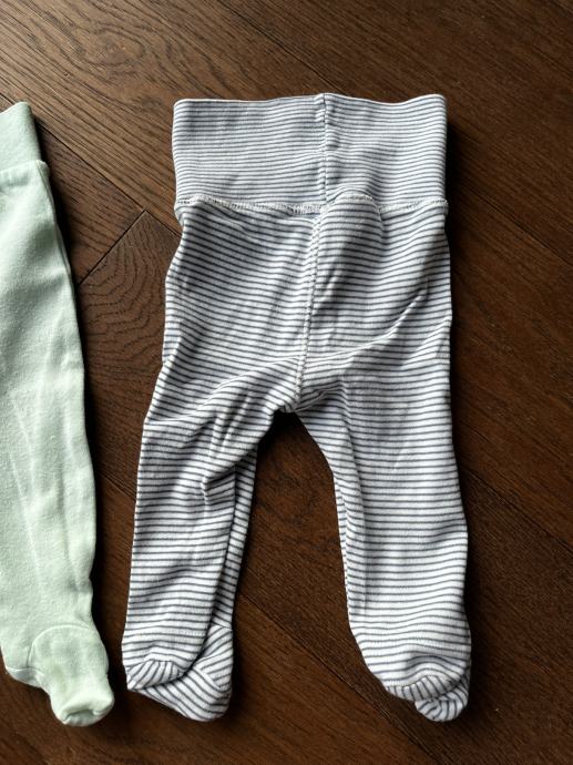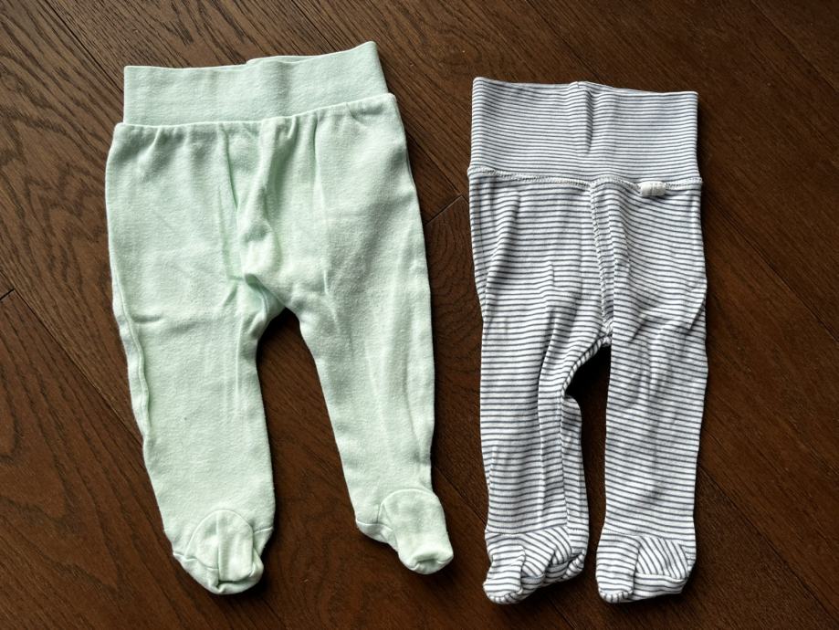 Hlače sa stopalima 56, prugaste h&m 56, zelene 68 ali smo ih nosili na 56/62 obadvoje. Bez oštećenja.