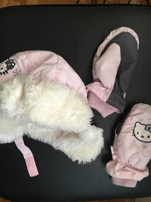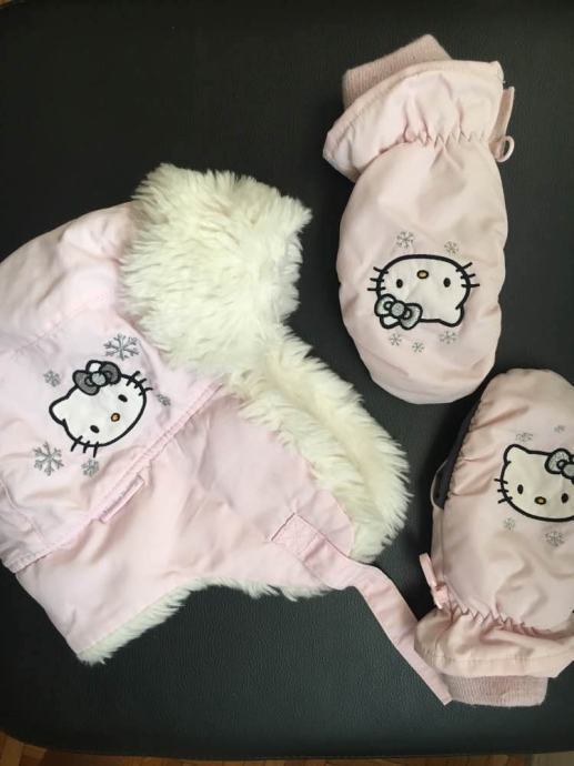 HM kapu i rukavice sa hello kitty velicina 4-6 ili 110-116. Šubara je postavljena i jako topla, te se veže pod bradom.