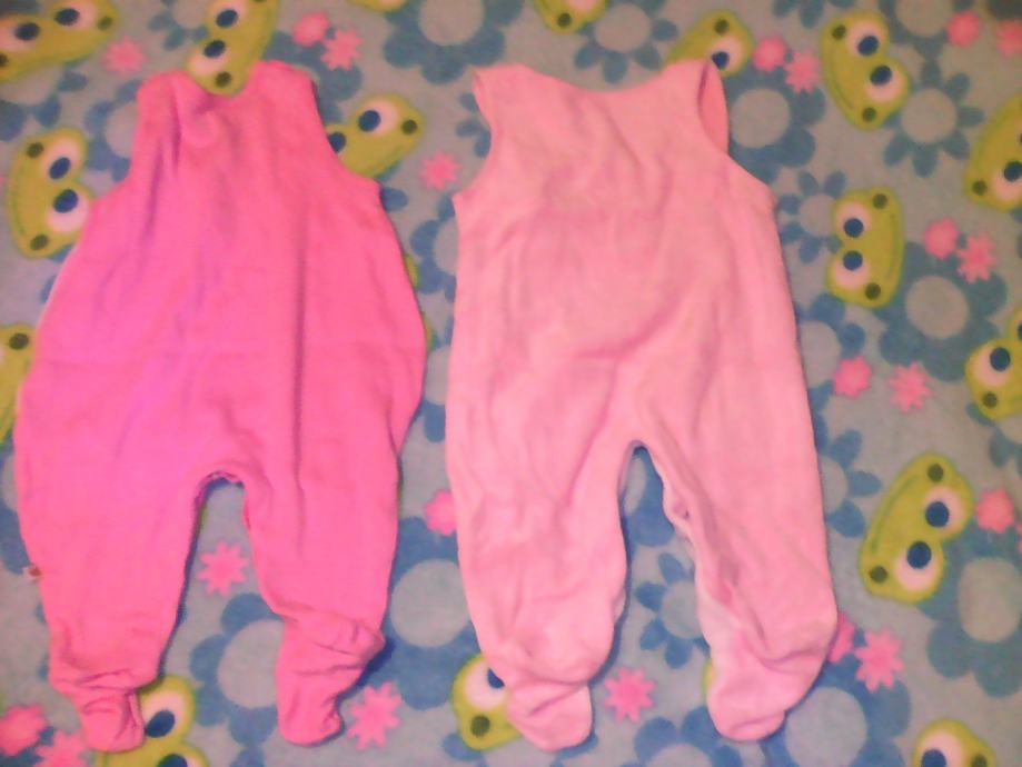 - deblji od pamučnog pliša svijetlije roze i bijele boje, isto s medvjedićem - kopčanje gumbićima na ramenima i drukerima između nogu za lako mijenjanje pelena