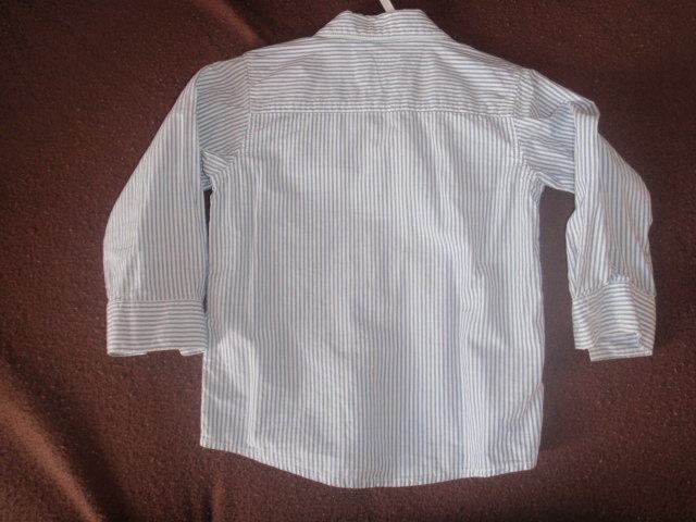 Dječji komplet: košulja na prugice plave boje + pulover bez rukava tamno plave boje sa rombovima u smeđoj boji s prednje strane. Brand H&M. Veličina 86. Jako dobro očuvano, bez flekica i oštećenja. Pogledajte moje ostale oglse.