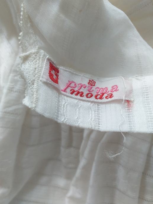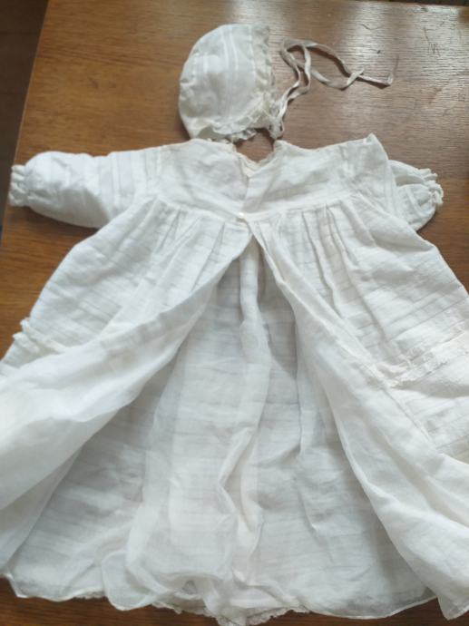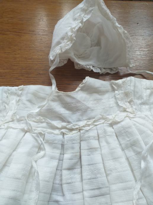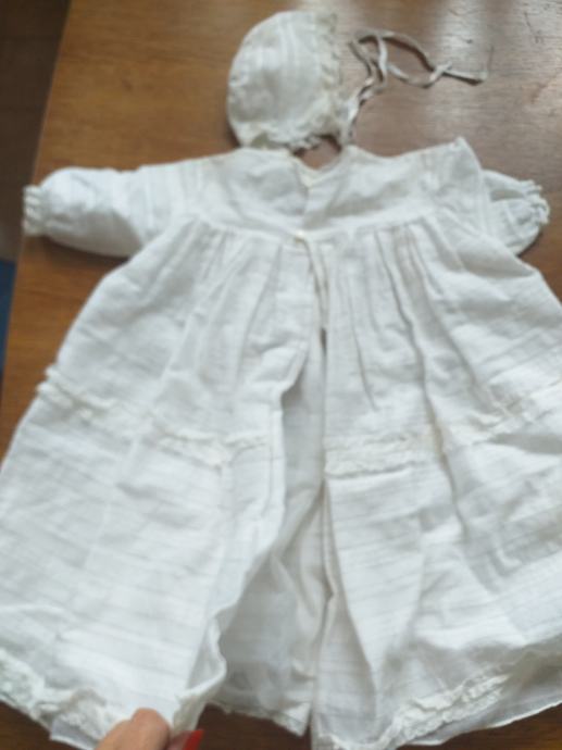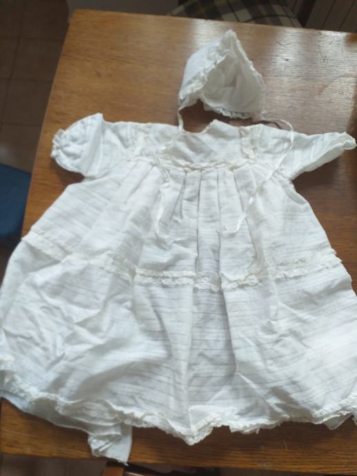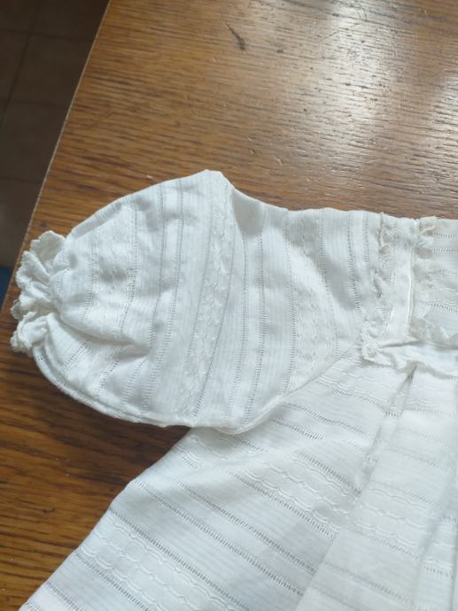Podajem prekrasnu talijansku krsnu haljinicu s kapicom od posebno tkanog platna - PRIMA MODA. Haljinica je podstavljena kako bi imala prekrasnu formu. Kupljena je u Italiji. Haljinicu treba oprati ili u čistionu dati, jer je stajala u originalnoj kutiji.